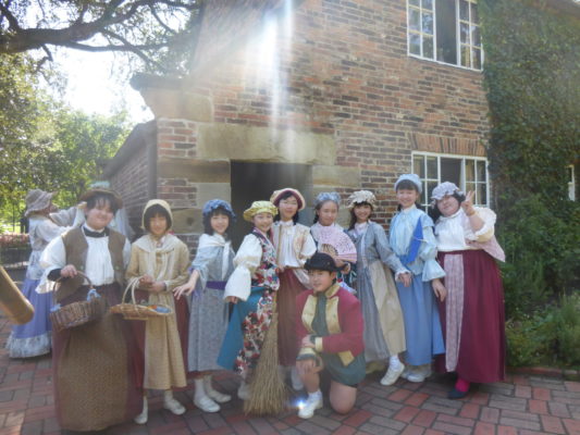 フィッツロイ公園で、開国当時の衣装に着替えてタイムスリップ。