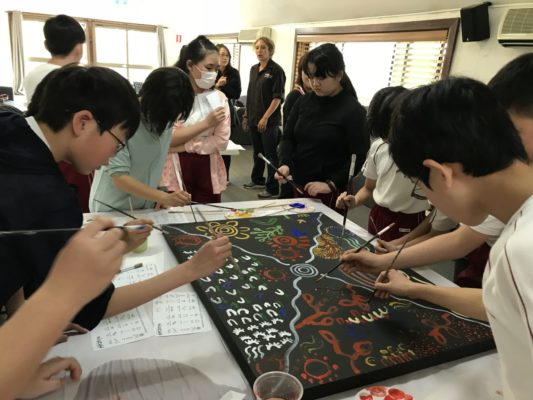 森に囲まれた大自然の中、オーストラリアの文化であるブーメラン投げやアボリジニーペインティング、鞭鳴らしなどを体験しました。