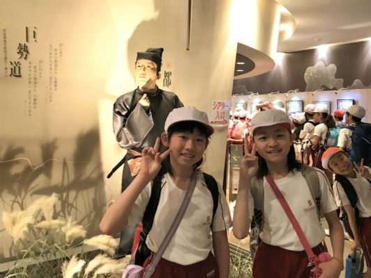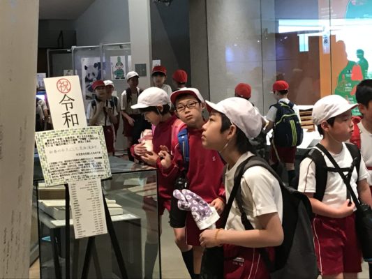 5年生は先に万葉館を訪れました。新元号「令和」の出典である「万葉集」に関する資料も多く、4月から社会科で新しく学習し始めた「歴史」に興味を持っている子が多いので、真剣な眼差しで見学していました。