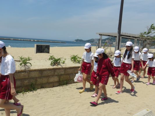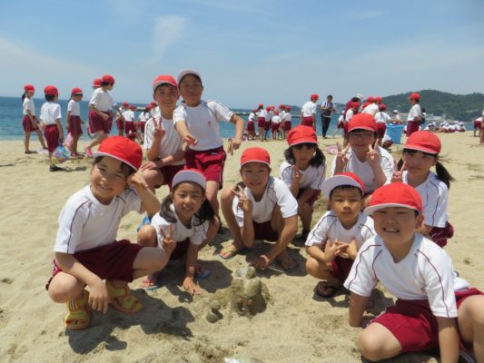 天候にも恵まれ、砂浜での造形アート、昼食、レクリエーションともに、5年生は2年生を上手にサポートしながら活動できました。