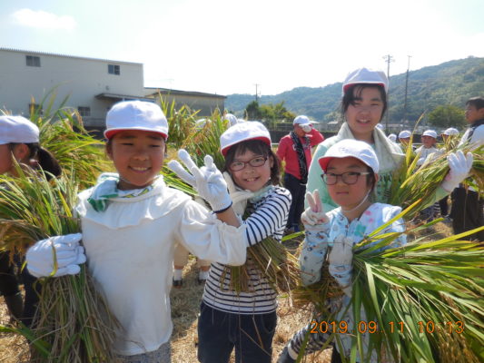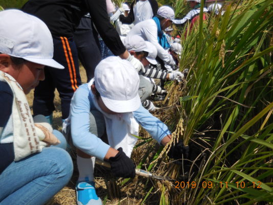 僕たち・私たち4年生は9月11日(水)に岡本さんの田んぼで稲刈りを体験させて頂きました。