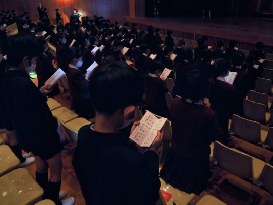 老夫婦は「少し前に病気になり、健康になれるようお願いしに来た。すると、智辯学園の学生からたくさん元気のいいあいさつをしてもらって、本当に嬉しかった。お陰で長生きできそう。」と仰ったそうです。理事長先生は、旅先で本校の生徒が周囲に幸せなかかわりができていることがとても嬉しかった。みんなもひとつひとつの言葉を大切にしようとお話しいただきました。
