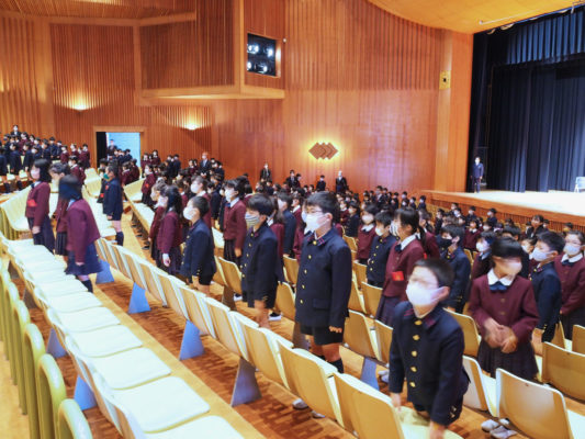 古来、日本では言葉には魂が宿る(言霊)と考え、言葉を大切にしてきました。言葉には不思議な力があります。よい言葉は相手を幸せにします。逆に悪い言葉は、相手を不幸にします。理事長先生は、子ども達に言葉の大切さを伝えてお話を終えました。お話が終わった後、1年生から5年生の児童は、修学旅行に行く6年生に向けてエールを送りました。