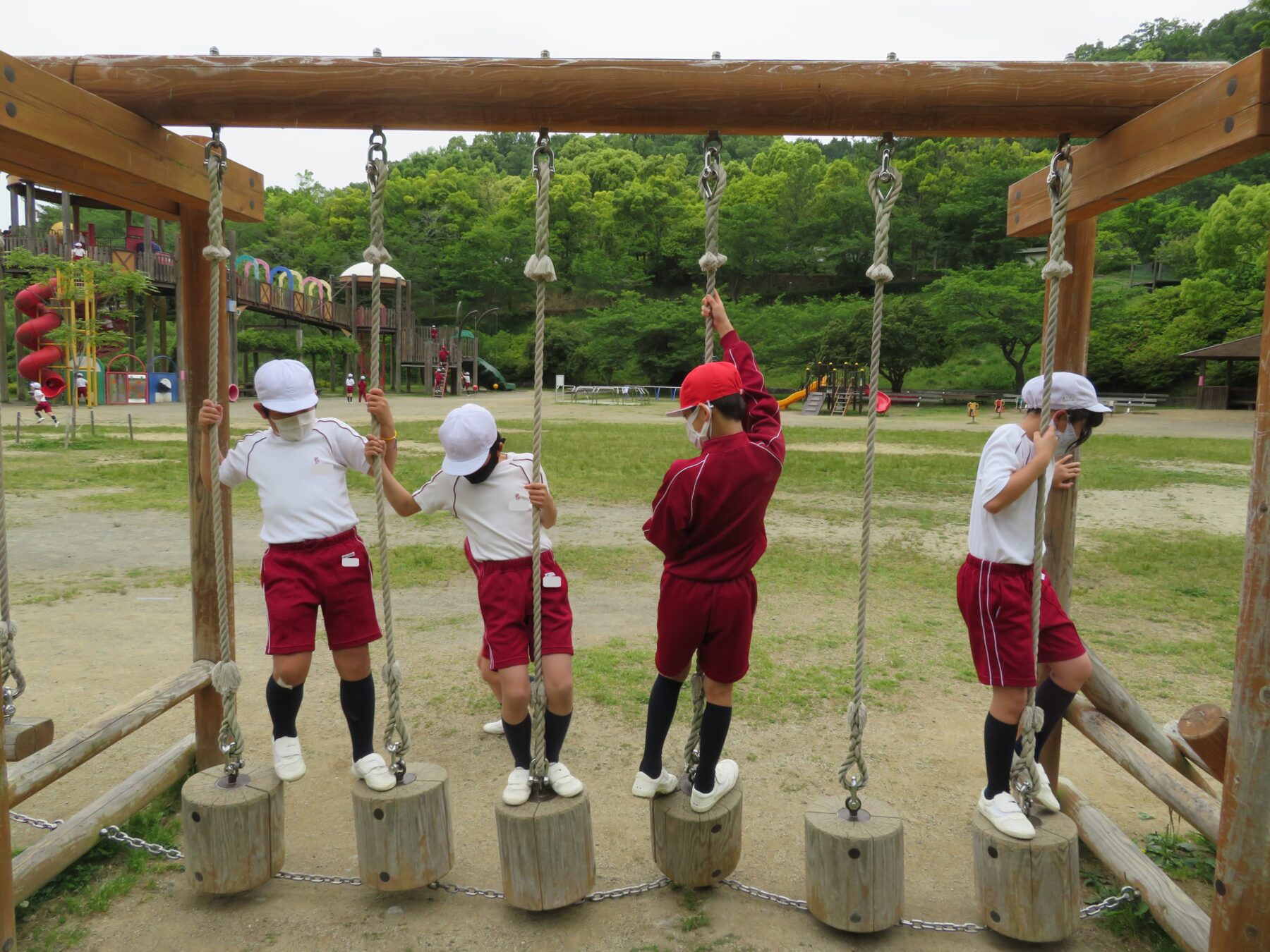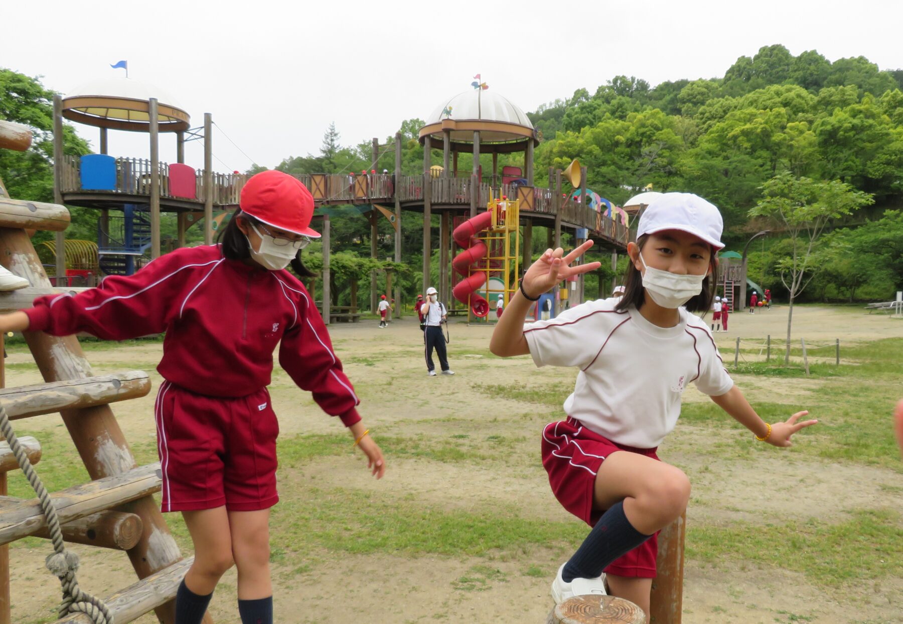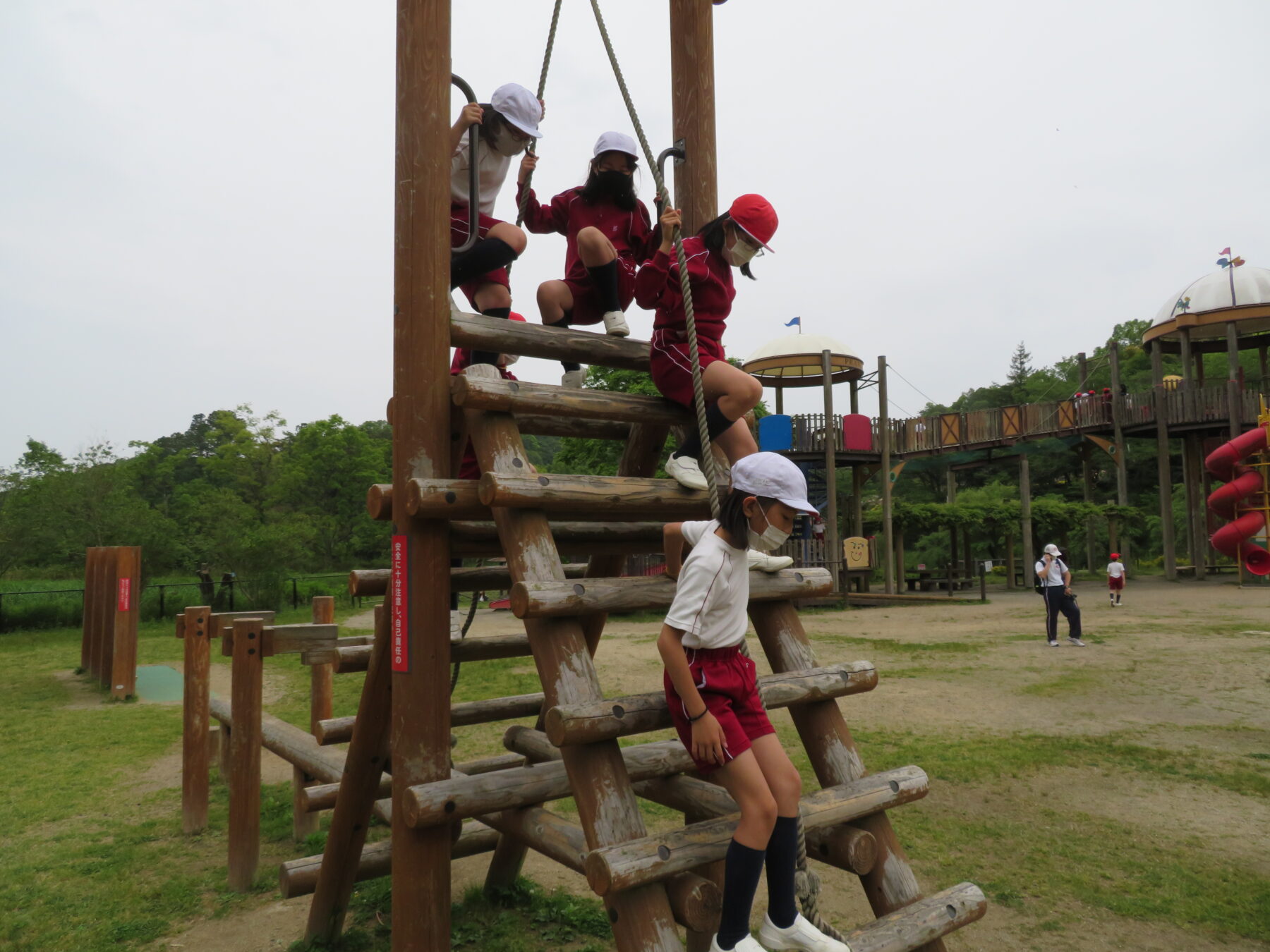 少し雨が降りましたが、いろいろな色の花や緑が多く、名前どおりの『緑花』が伝わってきました。また、すべり台やあしつぼ、アスレチックなど、遊具がたくさんあって、学年のみんなが思いっきり遊ぶことができました。途中で雨がひどくなってきて、お昼の弁当はバスの中で食べることになりましたが、楽しい、満足できる遠足になりました。