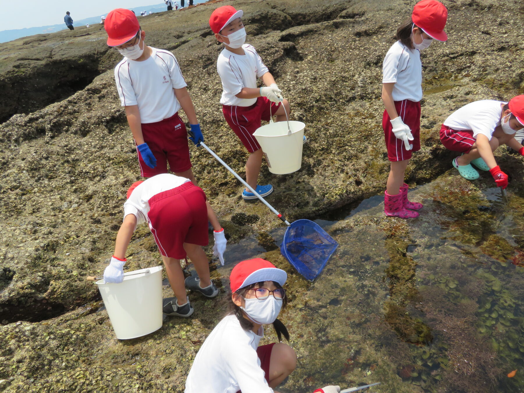 環境教育 【4年生】臨海学校 天神崎 磯で生き物観察、ナショナルトラスト運動 2021年6月9日 6月9日、4年生が臨海学校で天神崎を訪問しました。 天神崎では、「天神崎の自然を大切にする会」にご指導いただきながら、自分たちで潮だまりにいるたくさんの生き物を集めて、生物の多様性を感じました。気持ちのいい潮風、美しい景観、たくさんの生き物、そして、それらを守ってこられた方々。和歌山の大自然に触れ、多くのことを感じたよ...