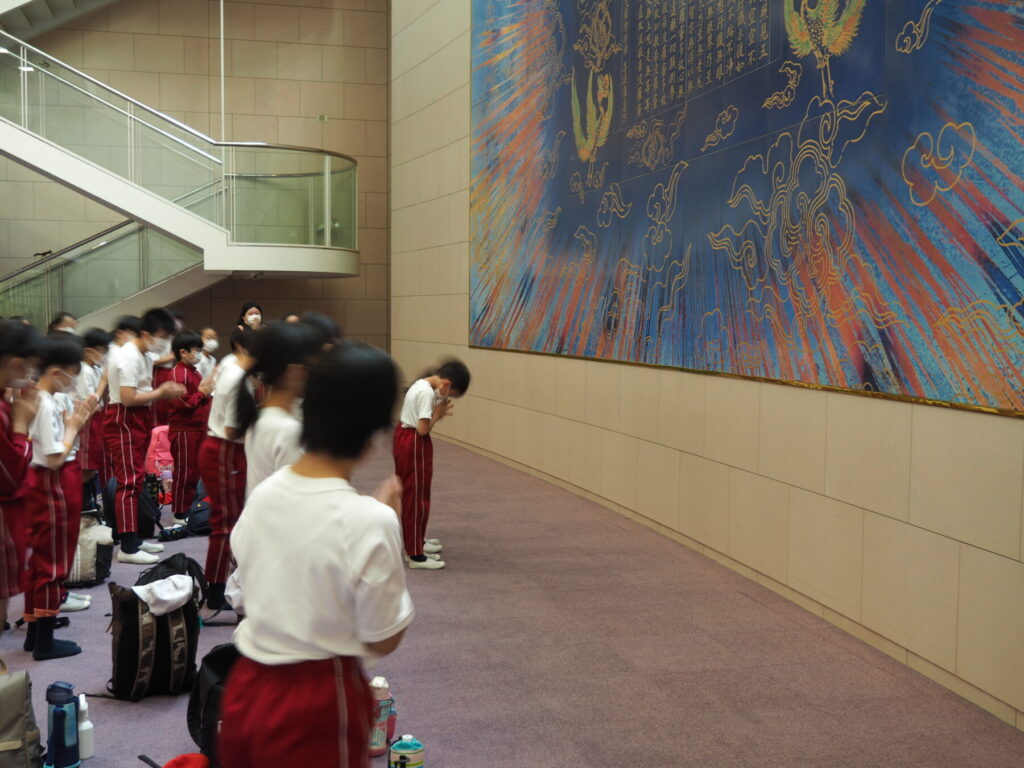 日本標準時子午線が通る広場でクラス写真を撮りました。