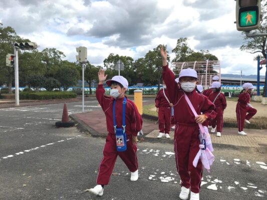 手をあげて上手に渡ることができました。
