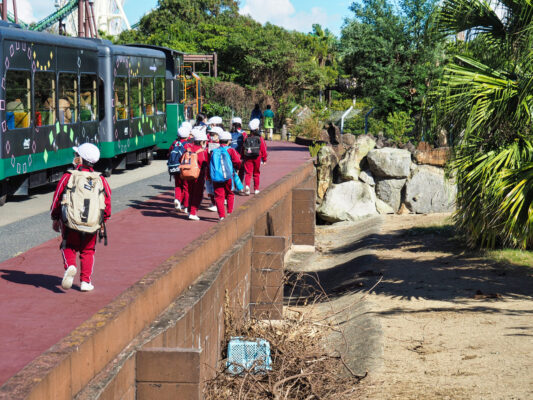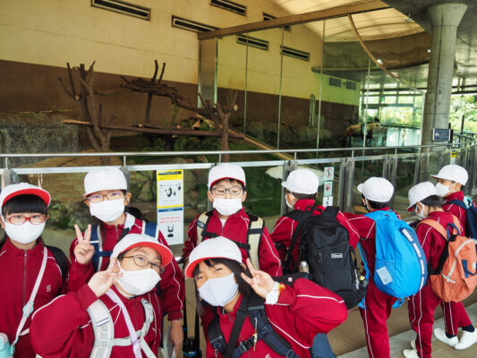 事前学習では、アドベンチャーワールド内のマップや動物の種類を勉強しました。当日は、10人~11人のグループに分かれて、班ごとに動物たちを観察する順番やルートを決めてまわり、1人1人が主体性を持ち、時間を意識して行動することが出来ました。