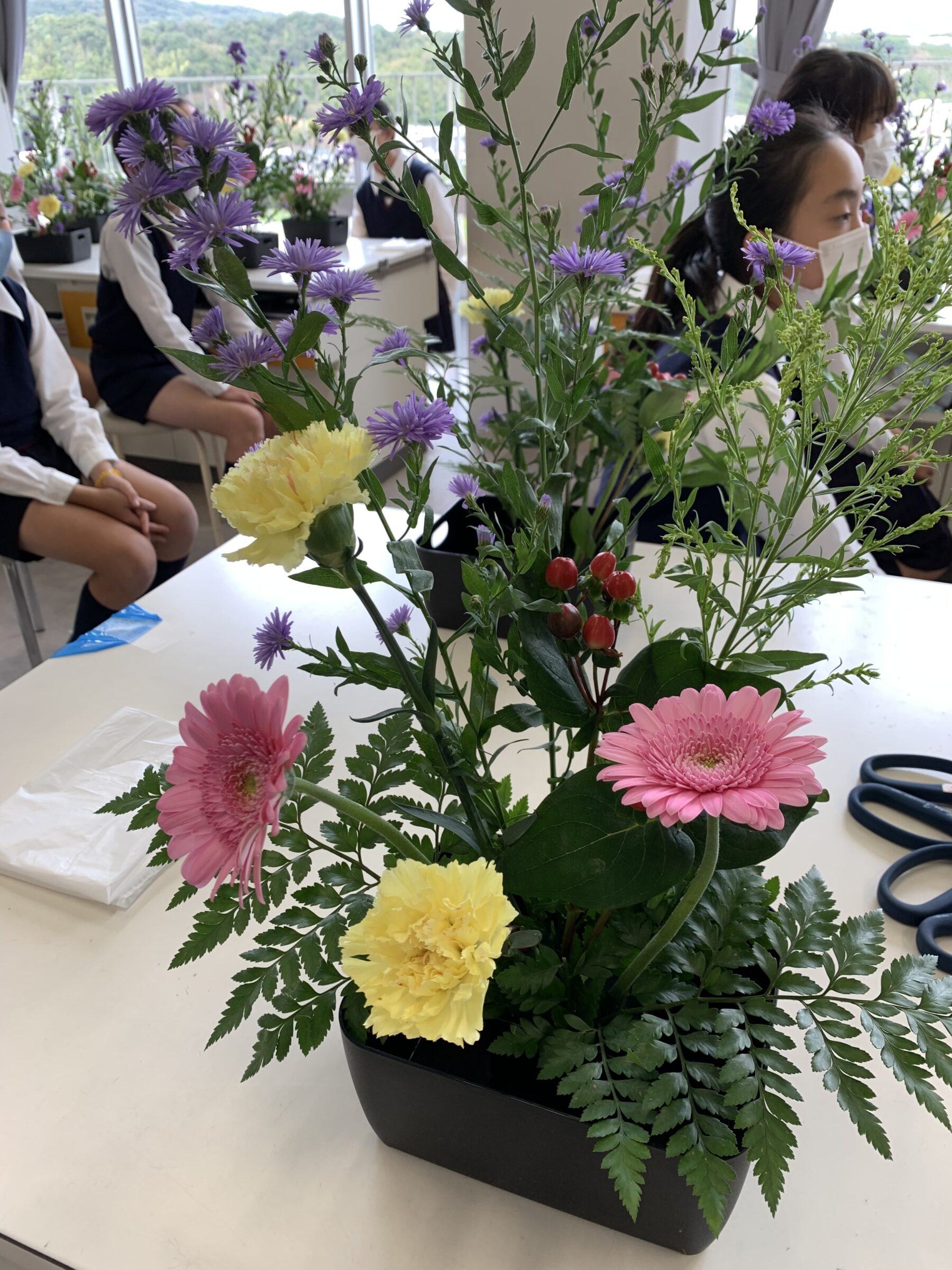 情操教育 【5,6年生】生け花体験教室 2021年10月22日 10月21日(木)・22日(金)の2日間に渡って、本校で生け花教室を行いました。 この取組は、例年、家庭科クラブで実施されています。今年度は、「紀の国わかやま文化祭 2021」の一環として、5・6年生の児童がそれぞれ生け花に挑戦しました。 本校には、「和歌山県生け花協会の岡田会長」をはじめ協会員の方々や、お笑い芸人の「...