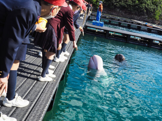 アドベンチャーワールドとクジラ博物館では、エサやりをしたり、ショーを観たりしました。動物たちが生活している姿を間近で観察することができ、実際に動物に触れ合ったり、エサをあげたりととても貴重な経験になりました。ショーで観た、動物と飼育員さんとの息の合ったパフォーマンスはとても素晴らしく、私たち人間と動物たちとのつながりを感じました。飼育員さんからの講義では、イルカやクジラにもヒトと同じように性格があることを教えていただきました。飼育員さんは一匹一匹の性格を見極めて、エサのあげ方などにも気を遣いながら接していると聞いて、動物に対してもヒトと同じように尊敬する気持ちを持って接することが大事だと思いました。