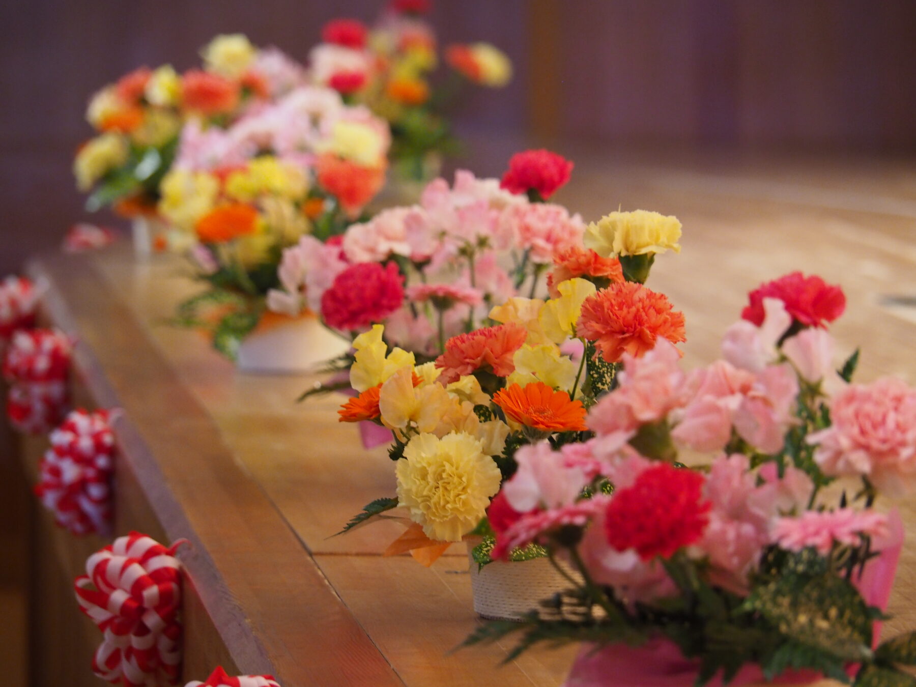 新入児童にとって、待ちに待った入学式。 春の暖かな陽気の中、初々しくかわいらしい姿で式に臨みました。 入学式に在校生は参列できませんでしたが、2年生児童が 「ようこそ!これから一緒にがんばろうね!」 という気持ちを込めて作った鶴の首飾りを教員からかけてもらいました。