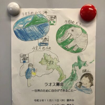 昨年度、授業でSDGsについて学習した3年生の発案で、校内でラオスへの募金活動を行いました。