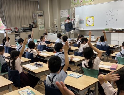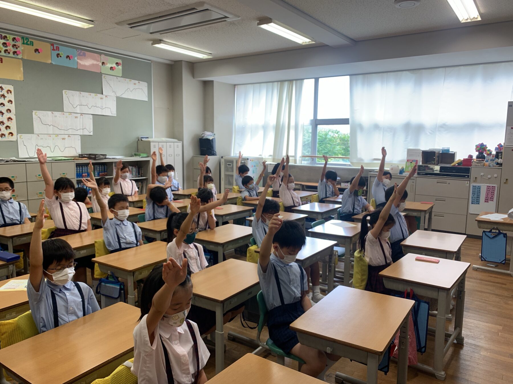 教頭先生から見えなくても、しっかり手を挙げています!