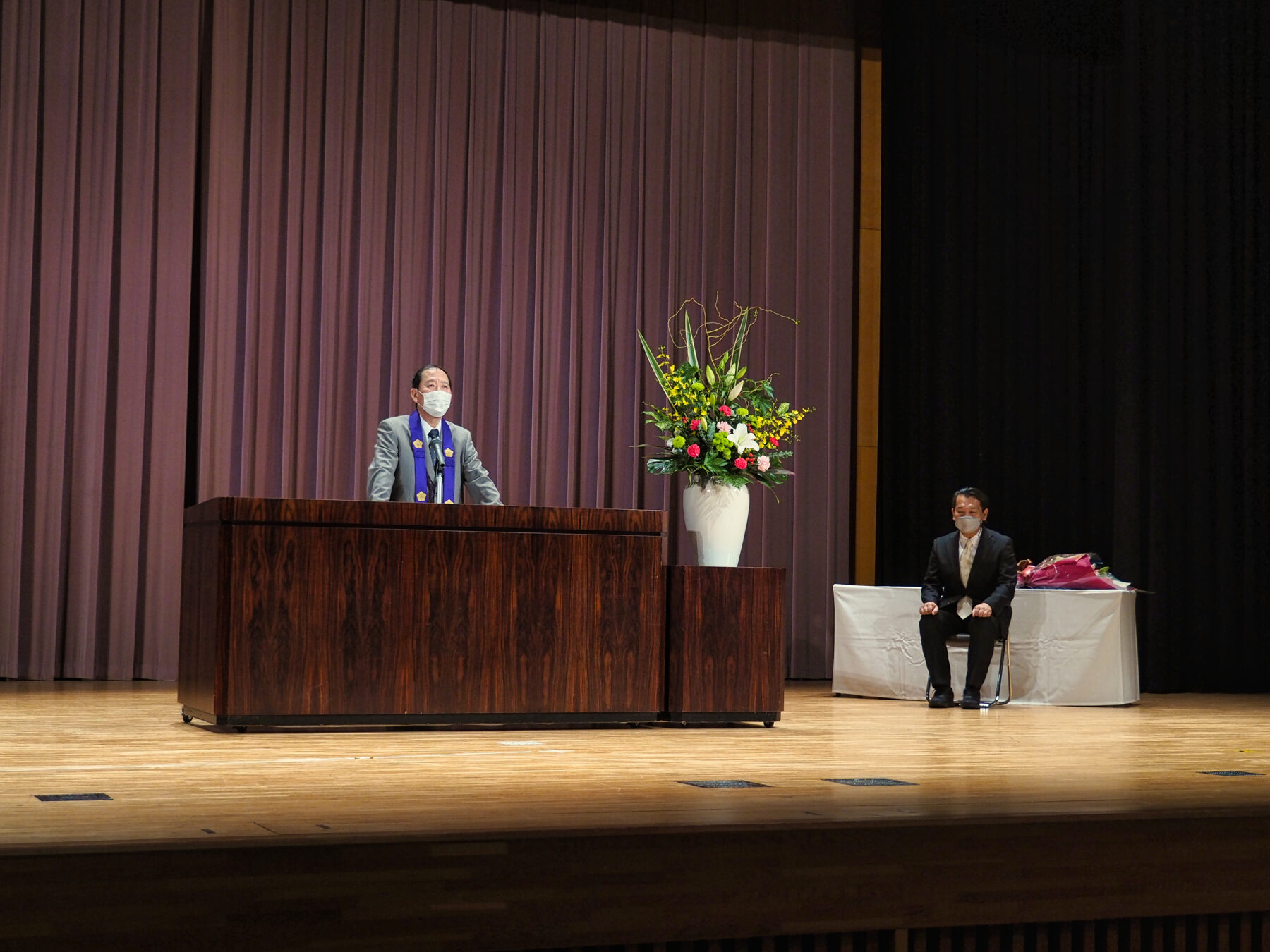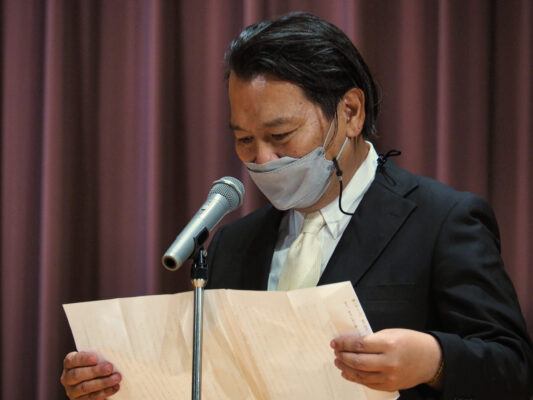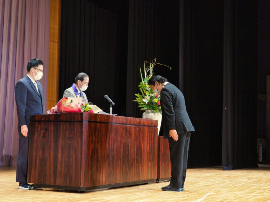読経の後、永年勤続者表彰式を執り行い、20年勤続表彰者として瀬戸研司先生が表彰されました。