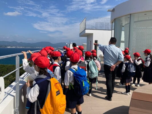 午前中は南方熊楠記念館で、和歌山の偉人である南方熊楠について学習しました。事前学習で南方熊楠の生涯と功績について学んでいた子どもたちは、実際に見る記念館の展示品に興味津々でした。特に8歳の頃から筆写を始め、17歳まで作成を続けたといわれる「和漢三才図会抜書」の現物には圧倒されました。