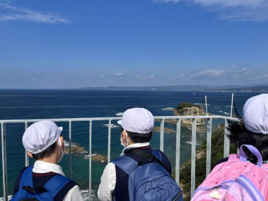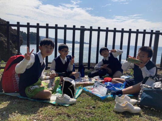 お昼は、記念館のすぐ近くにある番所山公園で、海を眺めながらお弁当を食べました。自然に溢れる白浜の雄大な景色、海からの潮風はとても心地よかったです。