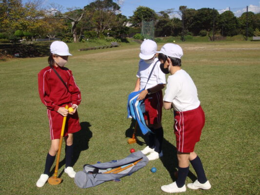 午後からは、潮岬青少年の家でグラウンドゴルフを行いました。公式の大会と同じルールで