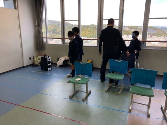 体験活動として、視覚障がい者の感覚を体験するために、アイマスクを付けて椅子で作ったコースを歩きました。アイマスクを付けた子は、「前が見えなくて怖い」「自分はどこに進んでいるのだろう」とびくびくしながら歩き、誘導する子は「どうすると相手に伝わりやすいのかな」と自分から考えながら介添えをしていました。特にイスに座るときに、相手がケガをしないように気をつけることができました。