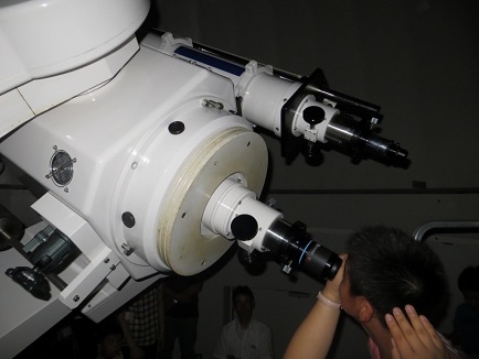 「自然・科学に興味を持ってほしい」という願いのもと、小学校校舎内に大望遠鏡を備えた天体観測ドームを設置しました。夏休みに行う天体観測会や太陽の黒点の観測等を自身の目で見ることによって、自然の迫力を体感できる施設です。