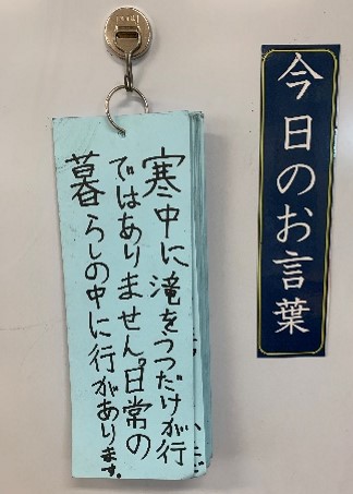 3.毎朝始業前のひととき「御真言・御宝号」をとなえ、決意新たに一日の活動を開始する。