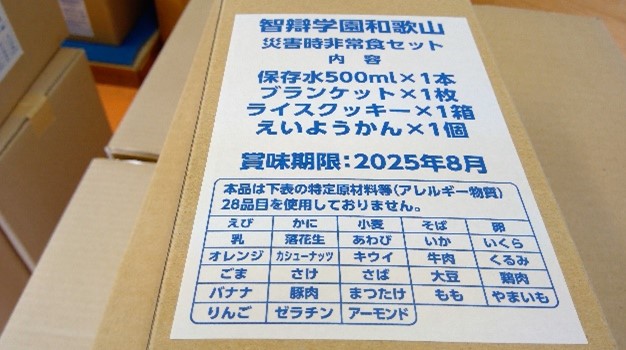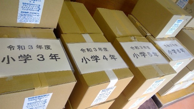本校では非常時に備え、一時的非常食等として、全校児童分の備蓄品を備えています。