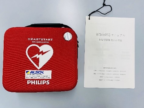 本校では、毎年教職員を対象に、和歌山市消防局の方々に来ていただいて、AEDの使用方法を含め救命講習を行っています。