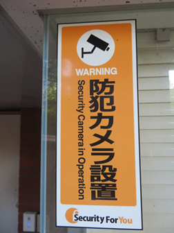 本校では、外部との接続部分(玄関出入り口やデッキ広場出入り口など)の各箇所に、防犯カメラを設置しています。自動ドアの施錠とともに、防犯上の観点から取り付けています。防犯カメラで「来校者に不審な動きがないか」をチェックし、24時間体制で作動しています。