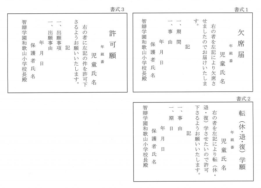 ※いずれも学校から配布する用紙はありませんので、ご家庭でご用意ください。