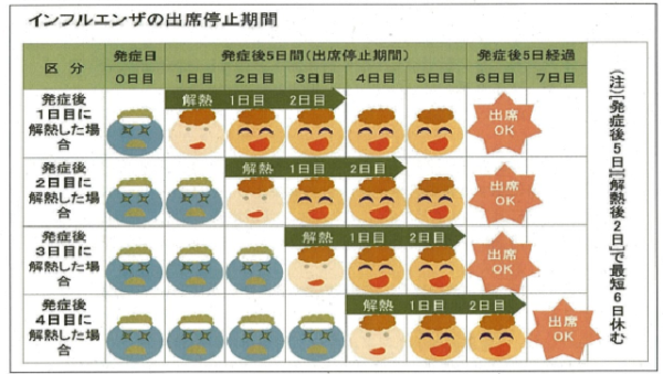(例)インフルエンザに罹患した場合の出席停止日の数え方