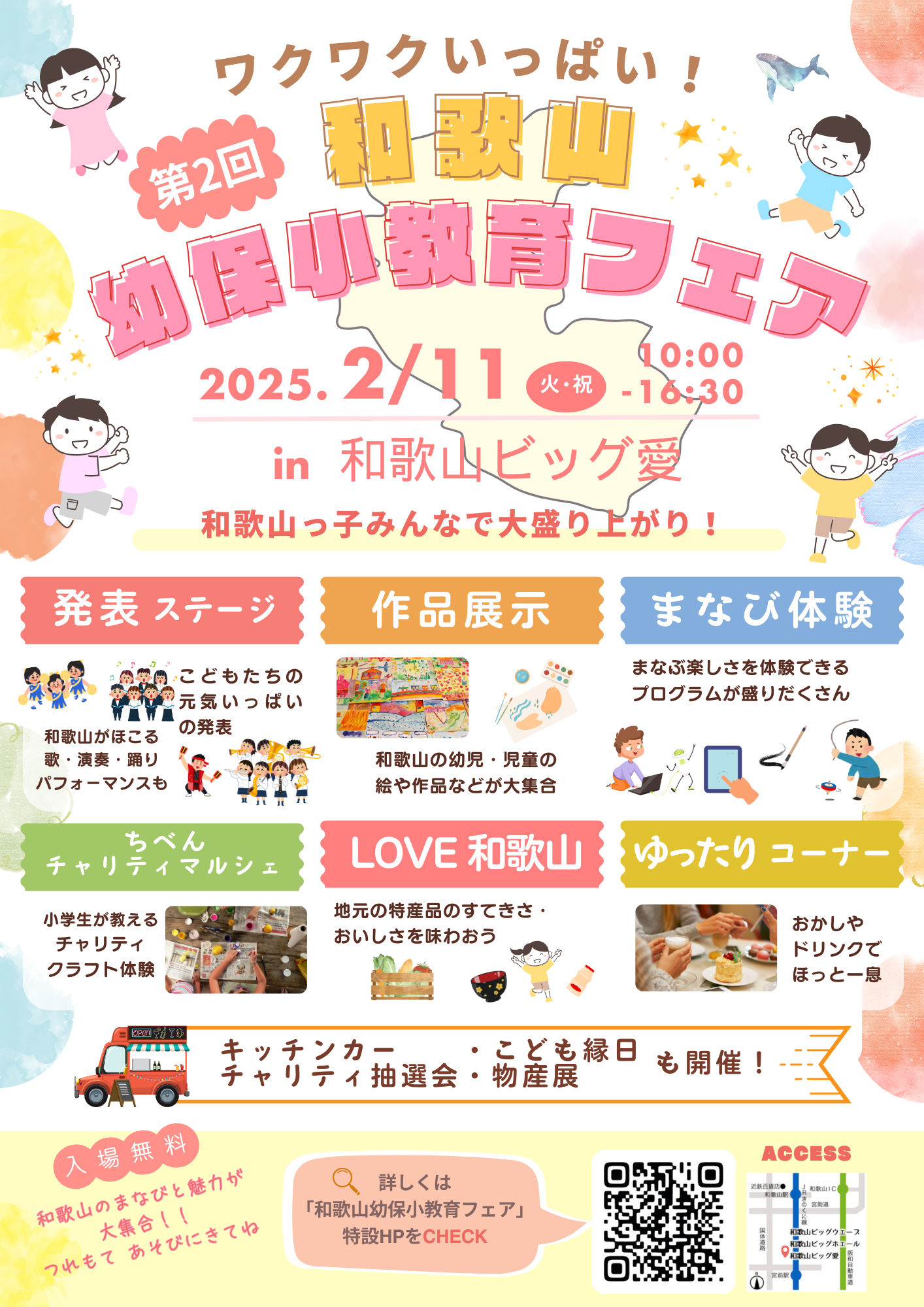 「和歌山の教育熱を高めたい」「和歌山に地域貢献したい」和歌山県の教育施設(幼保園、小中高、大学、習い事等)に加え、教育に関心の高い団体・企業・店舗も大集合!がんばるこどもたちの力作・発表 や