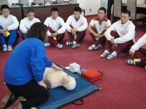 後半の実技では、AEDや人形を使っての救急救命の仕方を指導して頂きました。