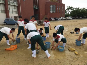 その他 H28年度 球技大会(準備) 2016年5月17日 平成28年度校内球技大会が中学校、高等学校とも無事に終了しました。当初は5月10日、11日を予定していましたが、雨天のため延期となりました。球技大会前日のグラウンドは、まだ水たまりがたくさんあり、中4・編入の生徒が水抜きに協力してくれました。また前日の準備では体育委員をはじめ、運動部員の協力があって、素晴らしいグラウン...