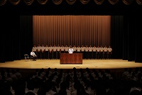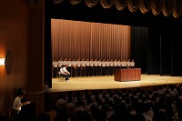 理事長先生、生徒会長の激励の挨拶のあと、第98回全国高校野球選手権和歌山大会での必勝を祈念し、応援団、チアリーダーを中心に選手たちへエールを送りました。