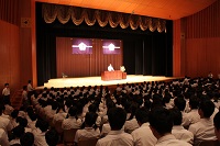 理事長先生からは、2学期の学校行事にも積極的に参加すること。高校3年生はこれからが正念場なので、ますますの学力向上を目指すこと。高校2年生以下の生徒は、学校行事、日々の授業を大切に、第2学期を有意義に過ごすことなどの訓示がありました。