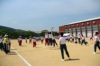 開会式では校長先生の訓示と選手宣誓、準備運動を全員で行いました。