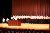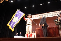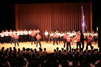 また、本校応援団・ブラスバンド部によるエールと校歌斉唱も行い、まもなく始まる地方大会に向けて
