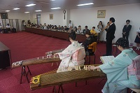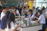 また、8月2日は本校に海外からの生徒・先生一行が来校されました。歓迎式典を講堂にて行い、学校紹介と少林寺、琴・茶道、書道の体験をした後、昼食にて本校生徒との交流会を持ちました。
