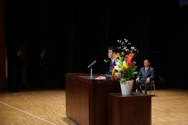 続いて、新入生代表が挨拶をし、「先輩方の背中を見ながら、自分たちも目標を達成できるように頑張りたいです」と力強く述べてくれました。