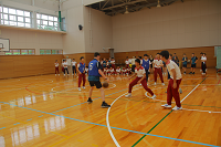 その後、高校2年生の体育の授業にて、バスケットボールで共に汗を流しました。