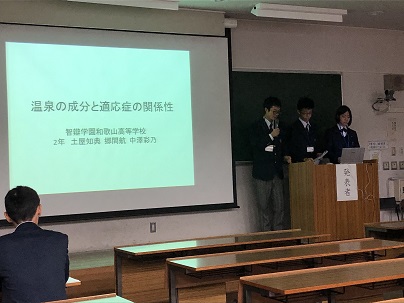 令和元年11月16日と17日に京都府の京都工芸繊維大学で行われた、第39回近畿高等学校総合文化祭 京都大会に本校の科学部の高校2年生が出場しました。前年度の和歌山県高等学校総合文化祭で、入賞した化学部門、地学部門の2チームが大きなホールや大学の講義教室などで、研究発表の成果をプレゼンテーションしました。他の県の興味深い実験も多く有り、熱心に質疑応答をしていました。科学部では、これからも様々なことに興味を持ち、研究発表をしていきます。