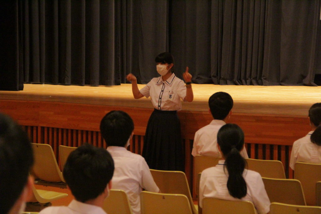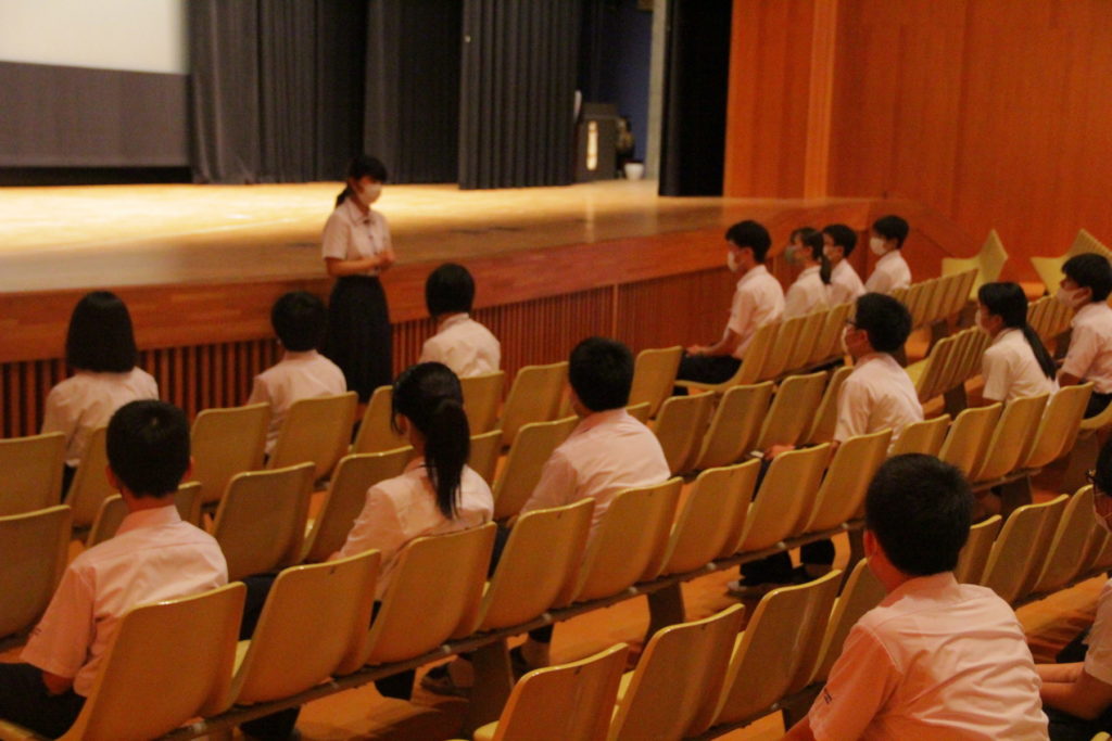学校委員会は生徒会の執行部を中心に自分たちで会の運営を行っています。今回は新生徒会長の畑中さんの挨拶で始まりました。その後各クラスから男女1名ずつ選出されている学校委員約60名を『庶務部・風紀部・文化部・体育部』に割当てました。今後は彼らが学校生活全般にわたり生徒会活動の中心となって活躍してくれます。