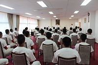 試合後、本校にて祝勝会が行われました。理事長先生から労いの言葉が送られ、主将の細川君は感謝の意と甲子園交流試合に向けた決意を述べました。