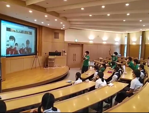 令和2年8月に実施されています「第44回 全国高等学校総合文化祭 2020こうち総文(https://www.2020kochisoubun.com/) 自然科学部門(https://www.2020kochisoubun.com/event/science/index.html)」について、本校マルチビジョンルームを使い、開催県の高知県の生徒実行委員会のメンバーと来年度開催地である和歌山県の生徒実行委員会のメンバーがZoomにて、交流会を行いました。