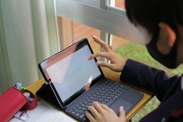 その他 中学生タブレット端末の貸与 2020年12月11日 2020年12月11日 中学校では学校所有のタブレット端末を生徒一人一台に貸し出し3年間利用してもらいます。全生徒に貸し出す前に『タブレット導入について』という内容で利用方法やルールについて集会を行いました。生徒は新しく始まる学びに期待し、熱心に話を聞いていました。 それに先立ち校内全教室にWiFi環境を整えました。今後、様々な教科でタブレットを活用した授業が展開されていきます。