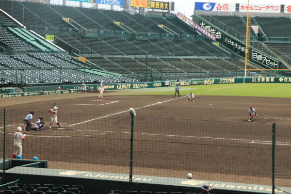 対戦校は香川の高松商業高等学校で、結果は5ー3での勝利でした。2回戦の宮崎商業高等学校戦が不戦勝であったため、本校にとっては、かなり遅れた甲子園での初戦となりましたが、見事に勝利をおさめてくれました。