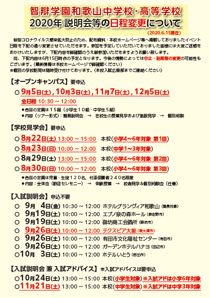 学校見学会(小学生対象第1~3回、中学生対象)の申込開始が7月1日から始まります。申込〆切が各開催日前の木曜日としております。各回の定員を設定しておりますので参加を予定されている皆様は早めの申込をお勧めします。